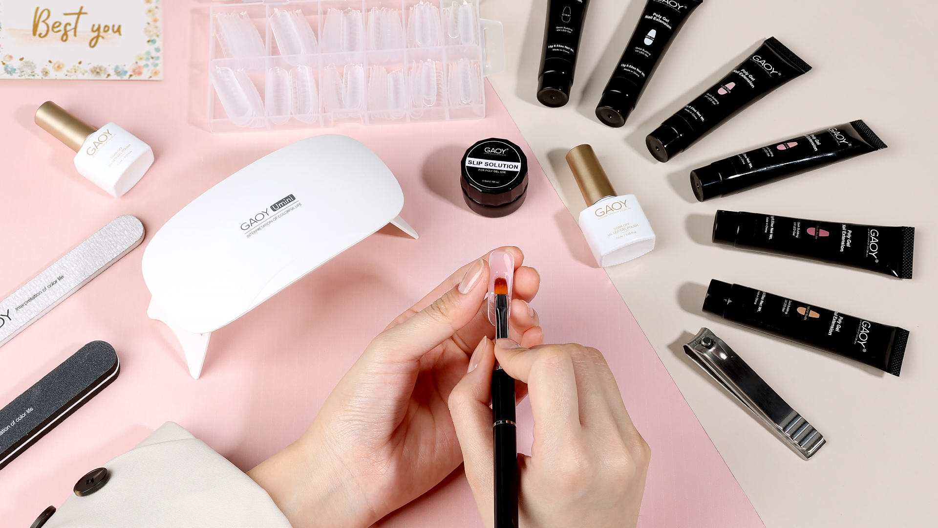 GAOY Poly Gel Nail Kit with U V Light Starter Kit, 6 Pcs Builder Gel Nail Extension Kit for Beginners with Everything Nail Art DIY