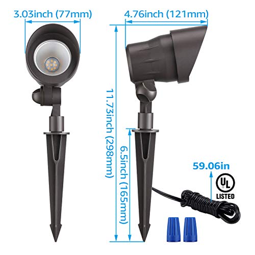 LEONLITE Low Voltage LED Landscape Spotlight, 12V AC/DC Die-cast Aluminum Low Voltage Garden Lights, CRI90+ IP65 Waterproof for Outdoor Yard Bush Lighting, Bronze, 3000K Warm White, Pack of 6