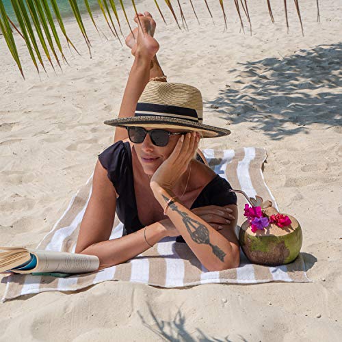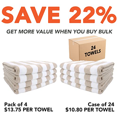 Arkwright Oversized Striped Beach Towels - Absorbent, Quick Drying, Ringspun Cotton Bulk Pool Towel, Perfect for Gym, Bath, and Spa, 30 x 70 in, (Pack of 4), Beige