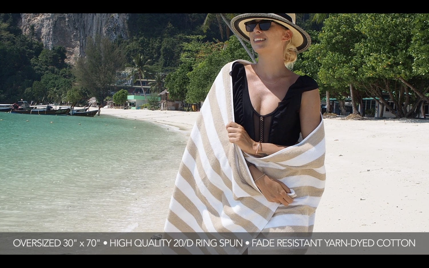 QUALITY TERRY TOWEL: Made from 20Double 100% ring spun cotton, California Cabana beach & pool towels are soft, absorbent, and quick-drying. Our Cabana pool towels are woven with yarn-dyed cotton so will not fade easily.