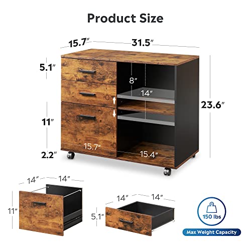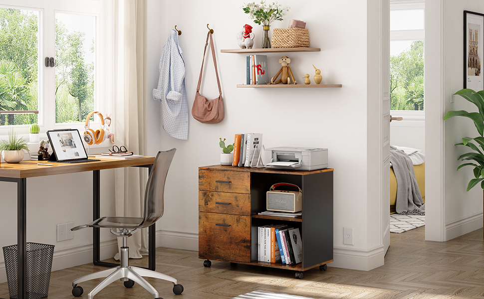 MULTIFUNCTIONAL & STYLISH: This filing cabinet with open storage spaces, file drawers and storage cabinet is designed to keep the office machines, paper, files and suppliers organized. It can be fixed beside or under desk. The sleek and modern finish is an easy fit for office or home study.