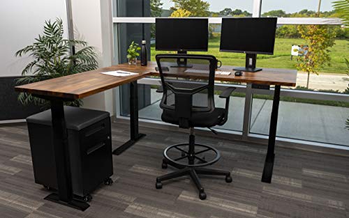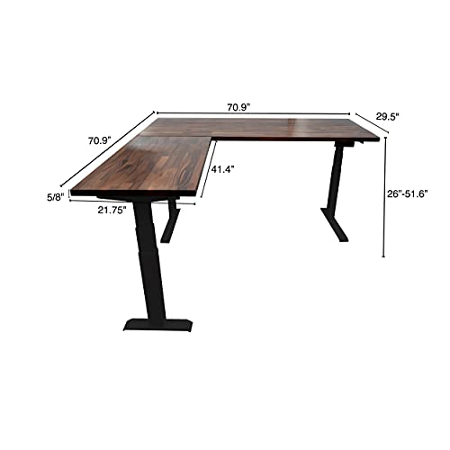 S STAND UP DESK STORE Triple Motor Electric L-Shaped Corner Standing Desk with EZ Assemble Frame (Black Frame/Solid Walnut Top, 71 inch W x 71 inch D)