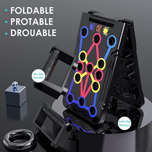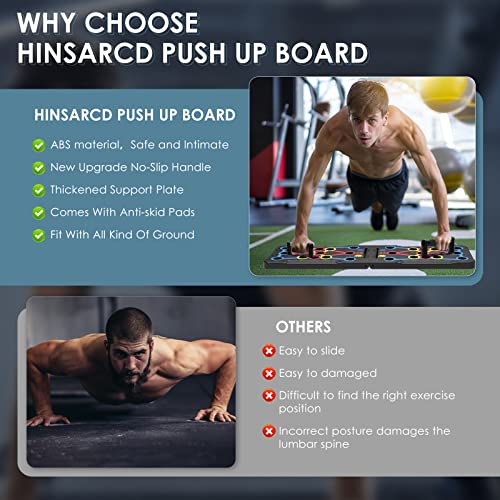 【Push Up Challenge Board For Home Fitness】Hinsarcd foldable push up board is color coded guide to provide 14 efficient symmetrical postures push up positions, specially designed to target different muscle groups (chest, shoulders, triceps, biceps, and back) while working your core to maximize your full body workout