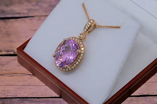 Top Materials: 14K Solid Rose Gold, Genuine Kunzite 16x12 mm 11-7/8 Ct, Diamonds 1/3 Ct, 18 in Chain