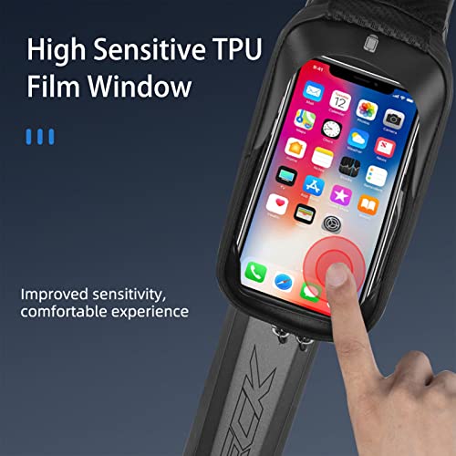 LARGE SPACE: Bike bag has enough inside room for long rides, holds a lot of stuff like iphone X, battery, energy gel, small tire pump, repair kits, keys, wallet etc. Perfect compatible with cellphones below 6.5 inches, iPhone XR XS MAX X 8 7 6s 6 plus 5s / Samsung Galaxy s8 s7 note 7, shake-proof bike front frame bag