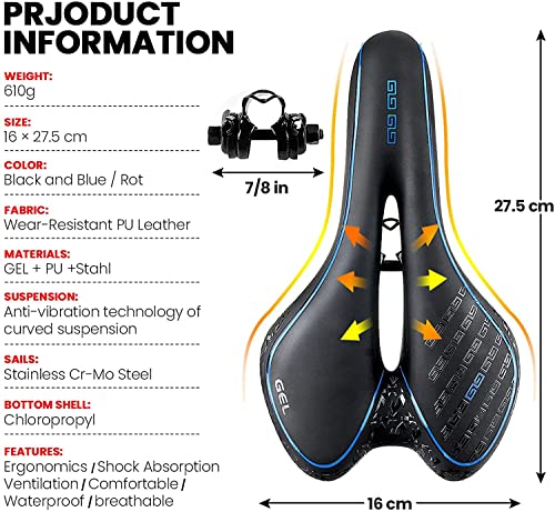 Mountain Bike Seat BRGOOD Gel Bicycle Seat Blue