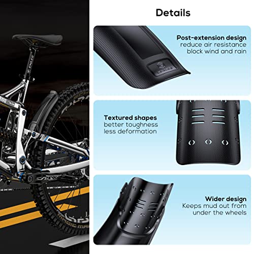 BEENOPT 2 PCs Universal Mountain Bike Fender, MTB Bicycle Fenders Rear + Front Mountain Bike Mud Guard Set, 14.37" Length 3.15" Width