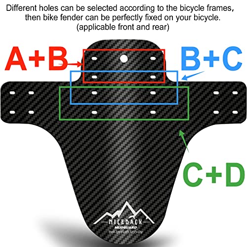 [Unique Carbon Fiber Grain] It's not a carbon fiber fender, but pressed with carbon fiber pattern. Non-toxic PP engineer plastic material is very lightweight but can be suffer in high temperature,long -lasting exposure and can be folded many times. Also effectively used to block mud and debris from the front of the mountain bike to keep you and your bike clean.