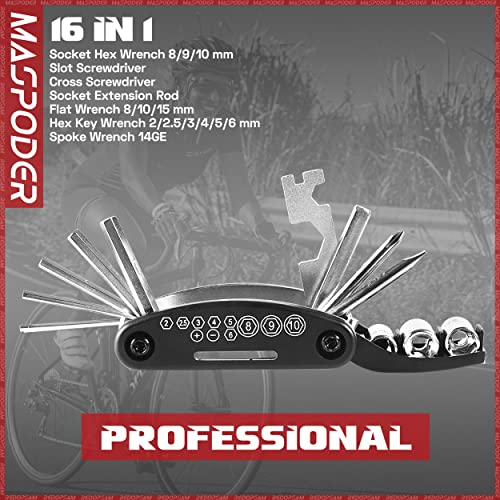 Professional Beginner's Bike Tool Kit. MASPODER bike tool kit is a great choice if you’re just getting into cycling. In an emergency, you can quickly fix your broken bicycle such as leaking tires with this specialist bike tool kit. No more unexpected situations disrupt your travel plans