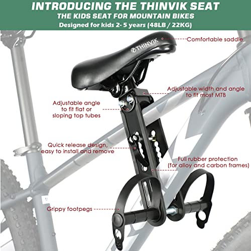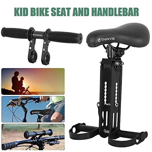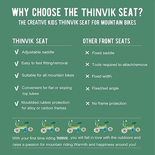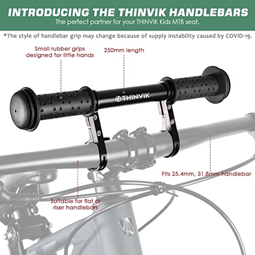 【Compatible With】Thinvik Kids Bike Seat Fits All Adult Mountain Bikes with flat or sloping top tubes. The Kids Bike Handlebars fit flat or riser style handlebars. They come with inserts to fit 25.4mm and 31.8mm handlebar diameters.( NOTE: Not Suitable for e-bikes or older bicycles with cables on the top tube)