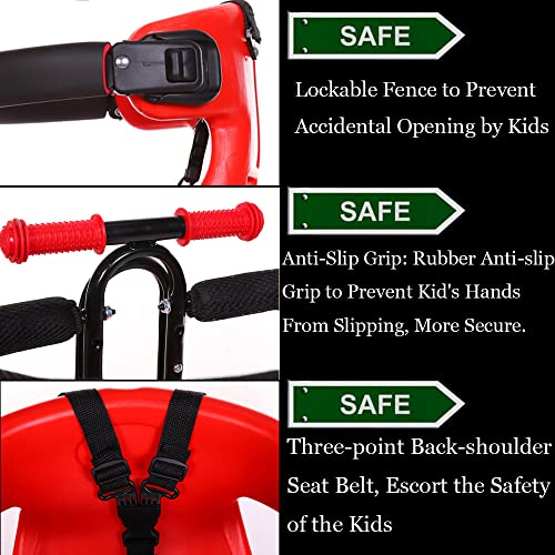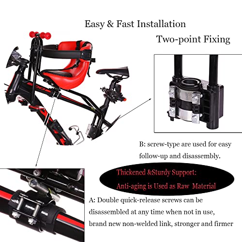 【Freedom to Take Long Rides With A Little One】Having a small child does not have to keep you from going on bike rides. Our front mounted child bike seat is great for taking a child with you. With your kids remains in front of you, right before your eyes, you can communicate with him/her easily. It also provides a better view to the child compared to rear mounted seats. This bike seat can support children up to 110 pounds who are between 8Months to 4 years of age.