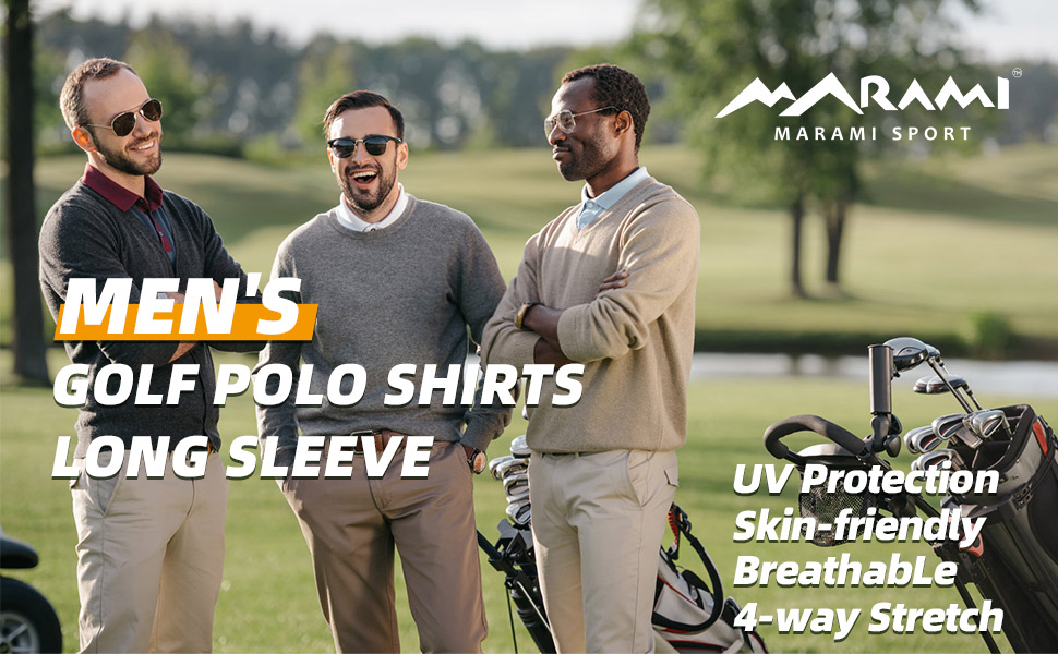marami Men's Golf Polo Shirts - Long Sleeve UV Protection Dry Fit Athletic Casual Collared Shirts Fishing Hiking Outdoor Tops