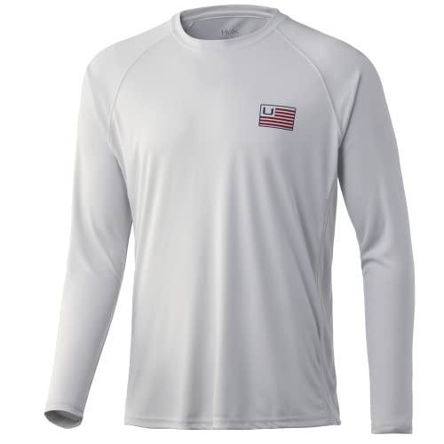 HUK Men's Standard Pursuit Long Sleeve Sun Protecting Fishing Shirt, Huk & Bars-Oyster, Small