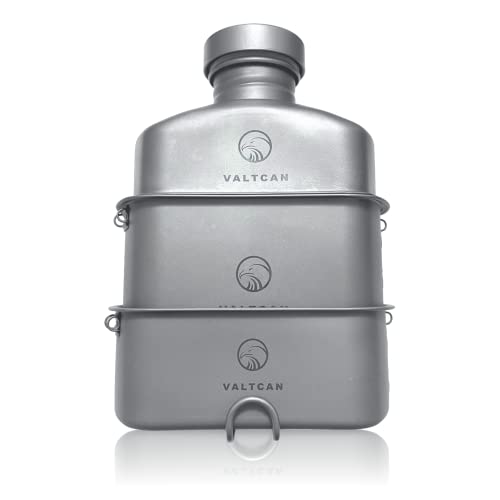 Valtcan Titanium Canteen Military Mess Kit 1100ml 37oz Capacity with 750ml and 400ml cookware Cups