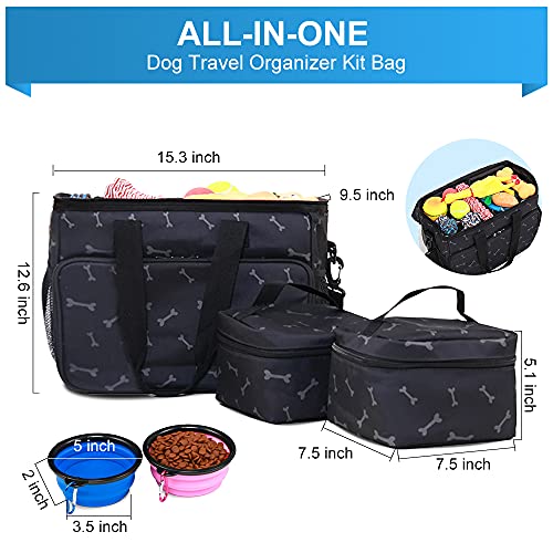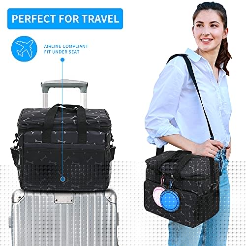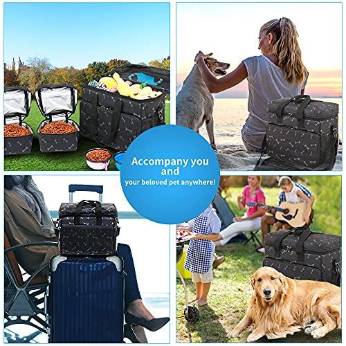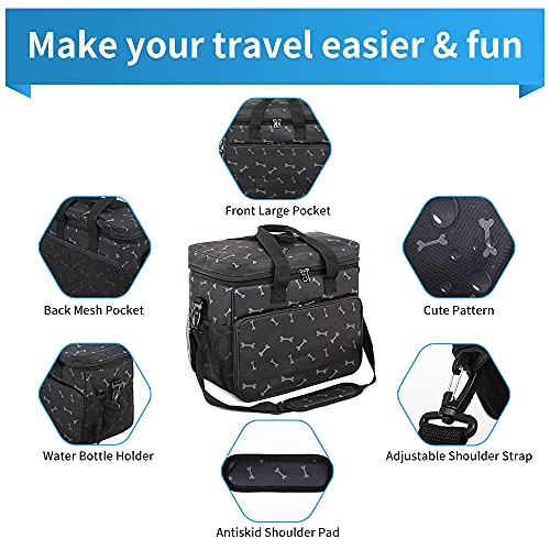 Large Capacity: Our pet travel bag measures approximately 15.3''(L)*12.6''(H)*9.5''(W),comes with a front pocket, a mesh pocket on either side, an internal zippered pocket, a detachable velcro divider. Enough to pack all the pet supplies you need when you go out or travel in one bag.