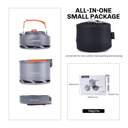 Fire-Maple Feast Heat Exchanger Set | Compact Camping Cookware Kit | Nested Design | Contain with a Pot, Kettle and Non-Stick Frypan | Ideal for Fishing, Picnic and Camp use