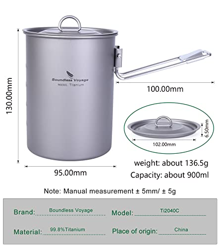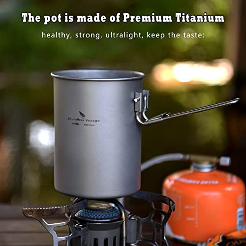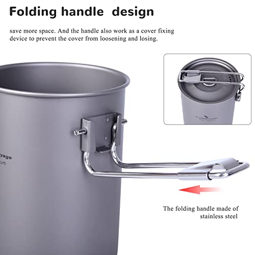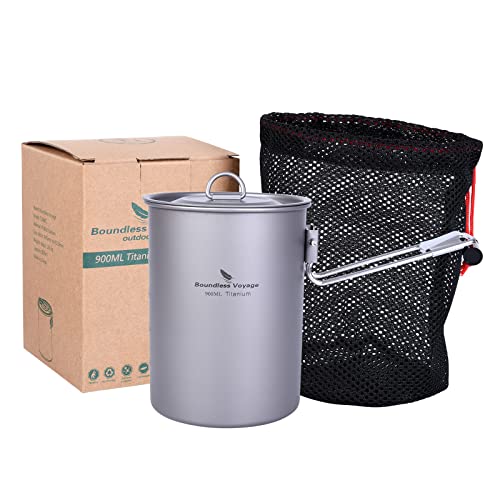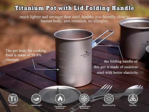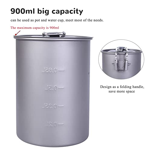 usharedo Ultralight Portable 900ml Outdoor Titanium Pot with Lid Folding Handle Camping Water Rice Food Bowl Cup Mug Bottle Ti15103B