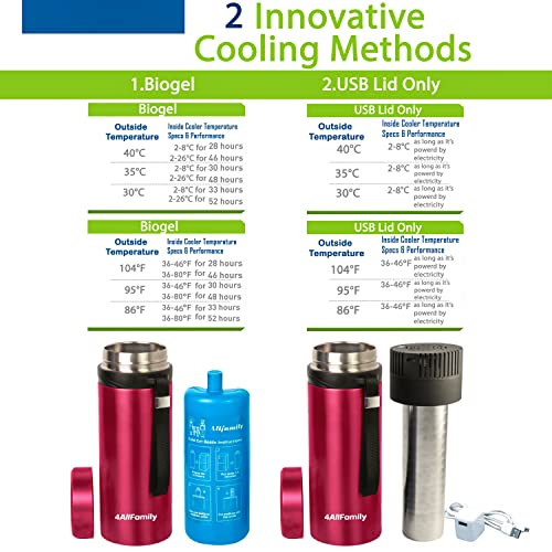 ✔️ [Innovative Medical cooler] -->This new 4ALLFAMILY medical cooler is masterfully designed to keep your expensive supplies SAFE. The new USB lid can deliver an outstanding maximum temperature drop of 50 Fahrenheit compared with outside temperature.