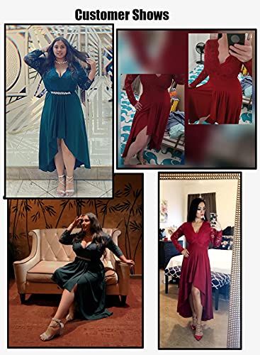 Elapsy Womens Sexy Lace Hi Low Cocktail Party Dress Floral Swing Prom Evening Gowns