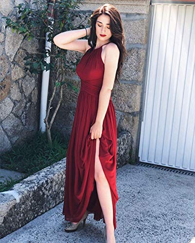 Clothfun Women's Halter Bridesmaid Dresses Long Chiffon Formal Dresses Evening Party Dress 2023