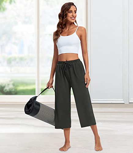 ASIMOON Womens Capri Yoga Pants Wide Leg Drawstring Lounge Pants Loose Comfy Workout Capris Sweatpants with Pockets