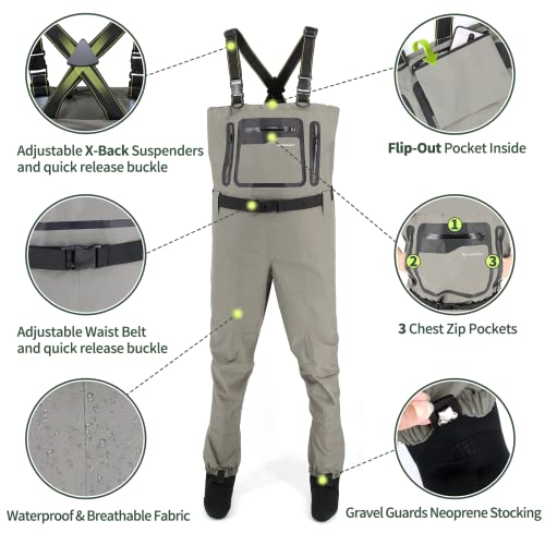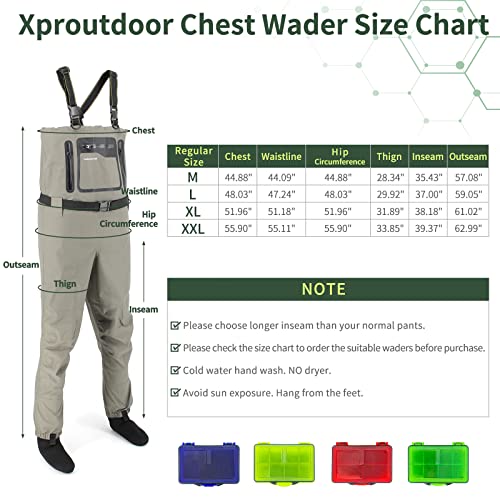 Xproutdoor Waterproof Chest Waders, Breathable Fishing & Hunting Wader with Stocking Foot for Men and Women, Regular Sizing, with 4 Fishing Tackle Storage Boxes Trays