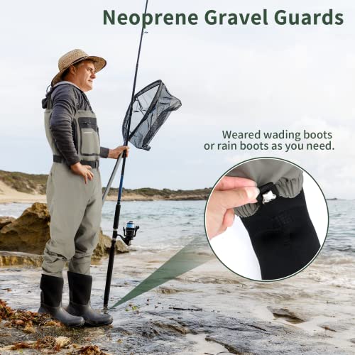 [Waterproof & Breathable Fabric] Xproutdoor chest waders are made from 3-ply structure breathable fabric which is durable and wear-resistant. Waterproof coating makes the waders always keep dry when you are fishing.