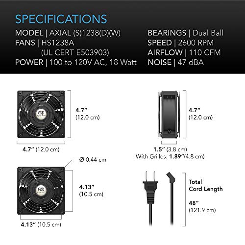 AC Infinity AXIAL 1238, Muffin Fan, 120V AC 120mm x 38mm High Speed, UL-Certified for DIY Cooling Ventilation Exhaust Projects