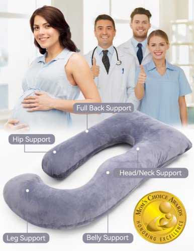 Momcozy Pregnancy Pillows, U Shaped Full Body Maternity Pillow with Removable Cover - Support for Back, Legs, Belly, Hips for Pregnant Women, 57 Inch Pregnancy Pillows for Sleeping, Grey
