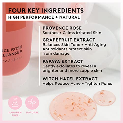 LA FLORELLE Provence Rose Foam Facial Cleanser: Non-Irritating Makeup Remover and Daily Face Wash for Women, Made with All Natural Ingredients for Gentle Exfoliation and Hydration for All Skin Types - 4.73 FL.OZ